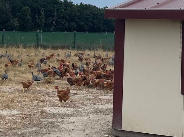 Poulet fermier élevé à la ferme, abattu à l'exploitation (abattoir à la ferme)